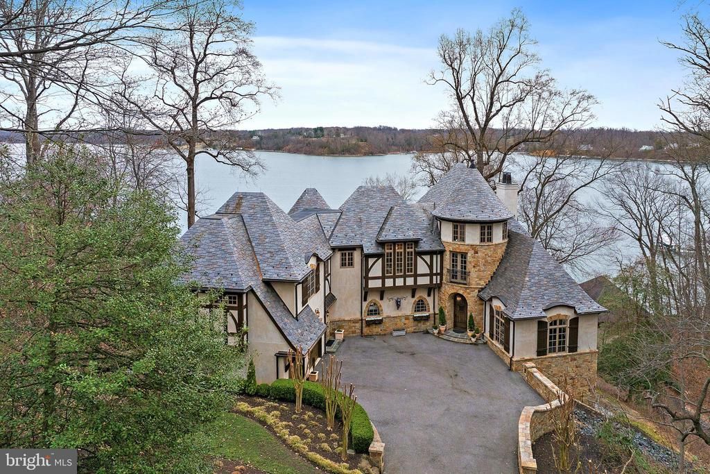 Set on 4.5 scenic acres along the Severn River, this exceptional Tudor/French Country estate blends timeless architecture with high-end craftsmanship just 10 minutes from downtown Annapolis. Light-filled interiors showcase sweeping water views and a seamless floor plan designed for both everyday living and entertaining. A dramatic curved staircase anchors the foyer, while the main level offers a gourmet kitchen, living room with stone fireplace, bar, office, mudroom, two powder rooms, and dining room. The chef’s kitchen features a 6+ burner Wolf range, hammered copper sinks, dual dishwashers, ample prep space, and a large pantry. The living area opens to a spacious deck, perfect for waterfront entertaining. Upstairs, the primary suite includes a wet bar, private balcony, two walk-in closets, dual vanities, and a walk-in shower. This level also offers flexible bonus space, two additional bedrooms, laundry, and a full bath. The lower level adds two more bedrooms, two full baths, a family room with fireplace and bar, and a game room—all with easy outdoor access and river views. A rare opportunity to own a meticulously crafted waterfront retreat combining old-world charm with modern luxury.