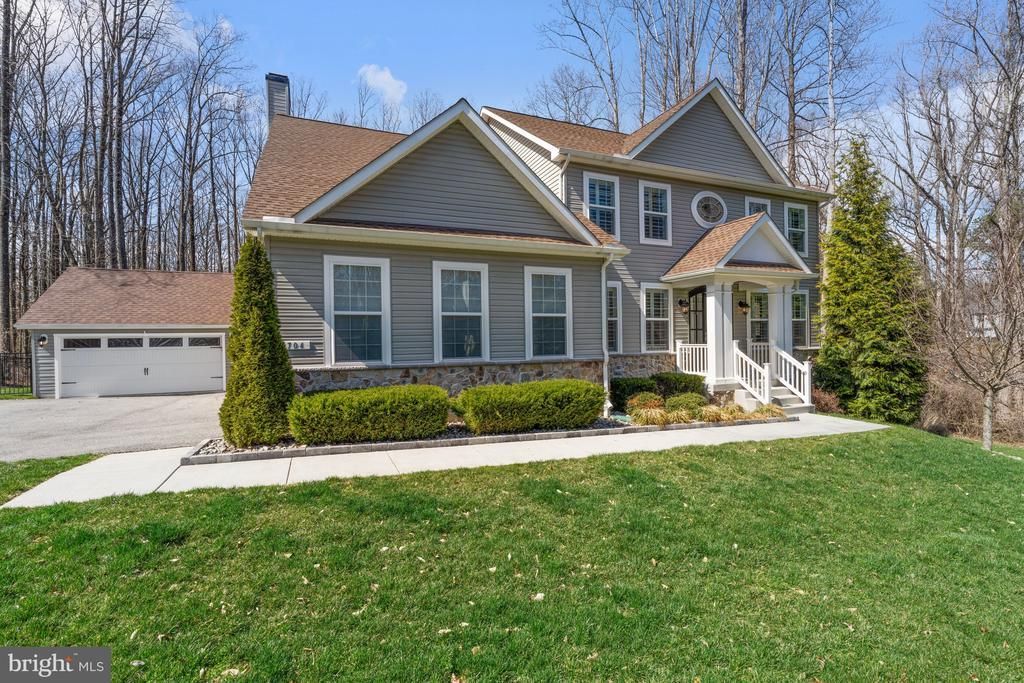 Welcome to 704 Roane Hollow Lane! A covered front porch leads into a beautifully appointed foyer, where custom built-in shelving introduces the home’s thoughtful design and attention to detail. Flanking the entry, a private study with French doors and custom accent wall provides an ideal work-from-home retreat, while the formal living room offers an elegant space for gathering. Wide-plank flooring flows seamlessly throughout the main level, complemented by plantation shutters, fresh designer paint, and curated lighting that create a cohesive and sophisticated aesthetic. The main level is thoughtfully designed for both everyday living and elevated entertaining. At the heart of the home, the gourmet kitchen is designed to impress, featuring an expansive center island, quartz countertops, custom tile backsplash, shaker-style cabinetry, premium stainless steel appliances, wall oven, and a six-burner gas range, all complemented by a spacious pantry. The adjoining family room showcases a coffered ceiling and wood-burning fireplace, creating a warm yet refined setting, while the formal dining space is perfectly suited for entertaining. A re-screened porch with a ceiling fan extends the living space outdoors, offering a seamless indoor-outdoor lifestyle. A well-appointed powder room and a thoughtfully designed mudroom, conveniently connected to the attached two-car garage with epoxy-coated floors, offer both functionality and everyday ease. Upstairs, the primary suite is a true retreat, highlighted by a cathedral ceiling and dual walk-in closets, each thoughtfully designed with custom built-ins. The primary bath features dual sink vanities, oversized shower with glass door and a separate soaking tub area. Three additional bedrooms, share a beautifully updated hall bath. A conveniently located upper-level laundry room enhances everyday ease. The fully finished lower level offers exceptional versatility, featuring a fifth bedroom, expansive recreation and game room, a renovated full bath with a walk-in shower, and a dedicated storage room. A custom-built, multi-use cooler/refrigerator adds a unique and highly functional element, ideal for a florist, wine collector, caterer, or additional food storage. The exterior is equally impressive, featuring a recently constructed detached garage designed with dual garage doors for convenient pass-through access. Extensive hardscaping, a private hot tub patio, and a fully fenced backyard create a beautifully curated outdoor setting, while the classic stone patio, fire pit, and basketball court offer endless opportunities for recreation and entertaining. Tucked within a quiet enclave of homes, this property offers a rare sense of privacy with peaceful, wooded views to the rear. Its prime location provides easy access to downtown Annapolis, the Annapolis Town Center, and Routes 50 and 97, making commuting and everyday conveniences effortless. With thoughtful upgrades throughout and a seamless blend of style, comfort, and functionality, this home offers an exceptional living experience.